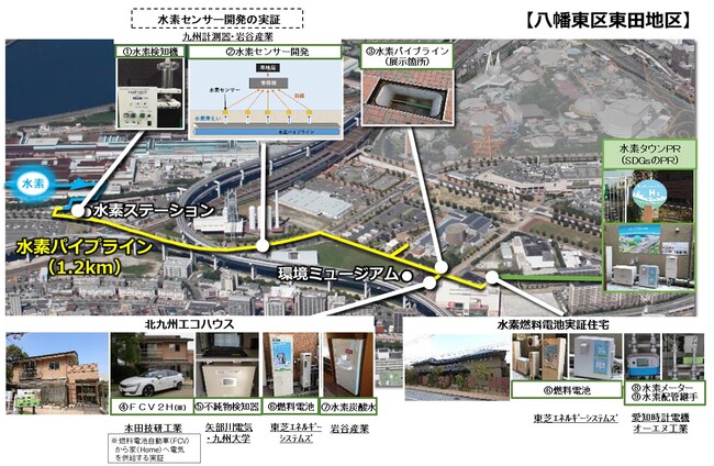 北九州水素タウンの水素集合住宅に水素燃焼給湯器を設置し、パイプラインで水素を供給・運用する実証実験を行います。水素燃焼給湯器のお湯は、台所と洗面台での給湯やお風呂のシャワーなど、実生活のなかで利用し、実使用環境下での給湯器の性能評価や長期運転による信頼性評価を行います。今回、導入する水素燃焼給湯器は、従来の給湯器の仕様をベースとしつつ、低能力まで安全・安定的な燃焼が可能で、給湯器として任意の水量、湯温に即座に対応を可能とするものです。年間を通じて家庭での実使用環境下で運用を行い、水素燃焼給湯器の安定運転の検証や国内規格等への対応、商品化に向けた課題整理を行います。北九州水素タウンは、北九州市八幡東区の水素パイプラインを用いた水素供給・利用実証の取り組みです。これまで集合住宅や業務用施設に設置した純水素型燃料電池への水素供給を行い、水素漏洩等の不具合もなく、安定的な水素供給を継続しています。今回追加される水素燃焼給湯器の需要に対しても安全かつ安定的にパイプライン供給できる運用方法を検証するなど、知見・運用実績を積み上げていきます。