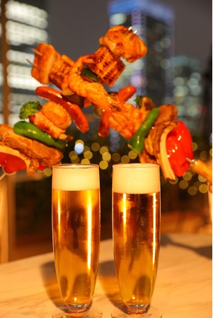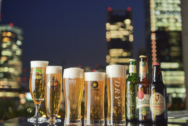 毎年、開放的な屋外テラスで夏季に行われる「アーバンビアテラス」は、今年で6回目の開催となります。東京駅や高層ビル群など都心ならではの美しい夜景と共に、ビールメーカー3社(アサヒ・キリン・サッポロ)のキリっと冷えた生ビールをはじめ、スタンダードコースは全38種、アップグレードコースでは全50種のお飲み物がオーダー形式の飲み放題でお楽しみいただけます。