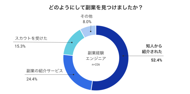 ▼半数の方が知人からの紹介で副業を見つけている