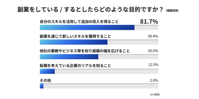 また、副業がスキルの習得の機会ということだけでなく、一部の方にとっては次の転職先候補の実態把握の目的もあることが今回わかりました。副業時の体験が転職の意志決定のファクターになっていくことも今後は増えてくるのではないかと考えています。