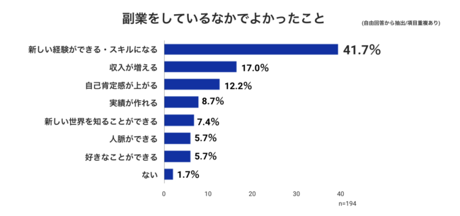 3. 副業でよかったことの第一位は「新しい経験やスキルの習得」(41%)