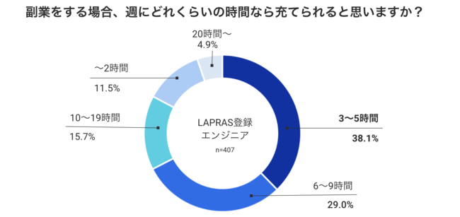 LAPRAS株式会社(所在地:東京都品川区、代表取締役:染谷健太郎 以下、LAPRAS)は、エンジニアキャリアプラットフォーム「LAPRAS」に登録しているエンジニア407人を対象とした副業に関する調査結果を公表しました。