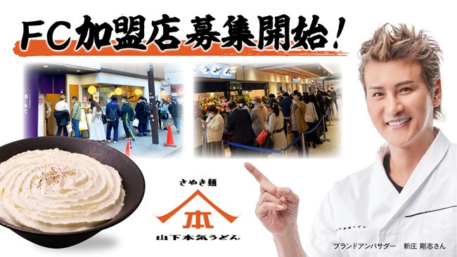 そして、この度当社の中核事業である「山下本気うどん」は、さらに多くのお客様に山下本気うどんを楽しんでいただくべく、フランチャイズの募集を2023年3月20日(月)より開始いたします。直営店・フランチャイズ加盟店を通して、これからも山下本気うどんをまだ利用したことのない方を含めたすべてのお客様に、「本気のうどん」を楽しんでいただけるよう、活動を続けてまいります。