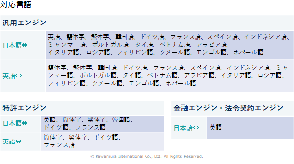 利用可能な翻訳エンジン:汎用 / 特許 /金融 /法令契約 の全エンジン