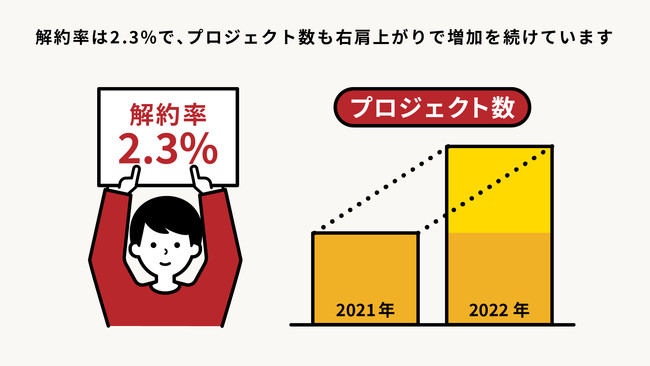 ◎解約率は2.3%でプロジェクト数も右肩上がりで増加を続けています。