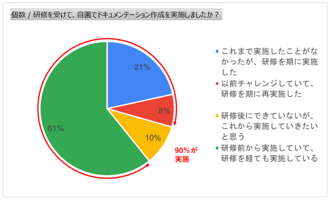 参加者の90%が研修終了後もドキュメンテーション作成を継続