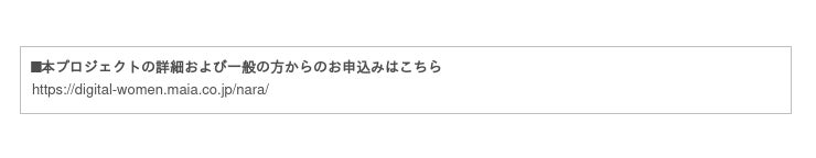 「でじたる女子活躍推進コンソーシアム」は、MAIA、グラミン日本、SAPジャパンのそれぞれが持つ知見やサービスを掛け合わせ、デジタル技術を活用できる女性人材の募集から育成・教育および就労支援を一貫して行っています。この度、奈良県内で当コンソーシアムが実施する「奈良県女性デジタル人材育成プロジェクト」においても、デジタル分野で活躍する人材を育成することで、奈良県内の女性の自立と活躍の推進と、奈良デジタル戦略の推進を図ります。