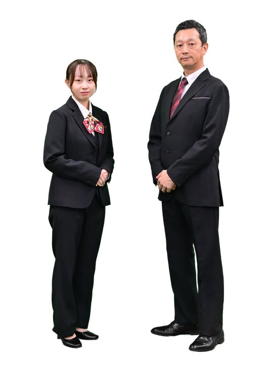 ・ネクタイおよびリボンには、当社旧ロゴに用いられていた“赤茶色”を基調に取り入れたエンジ色を採用。創業以来受け継いできた「和の精神」を体現しつつ、未来に向けた事業のさらなる発展を示すものです。