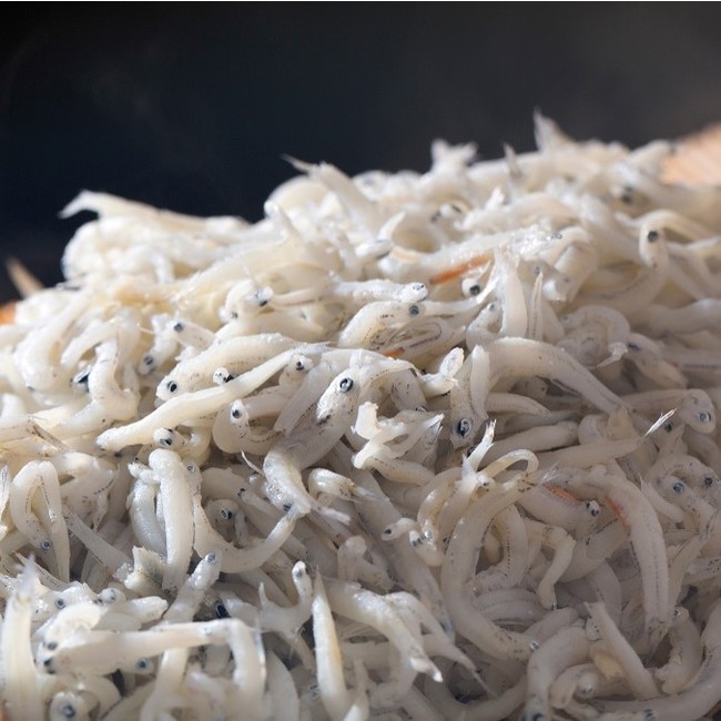 淡路島産の釜揚げしらすは、水揚げされて間もない生きた状態に近い「生しらす」を釜で茹で上げて程よく水分を飛ばしたものです。味わいは、ふっくらと仕上げで苦味はほとんどありません。シラスは、イワシの稚魚ですが、 獲れるイワシの種類は季節で変わります。毎朝、地元の近海で水揚げ上げされたシラスから新鮮で最良のしらす厳選して釜揚げにして提供されます。