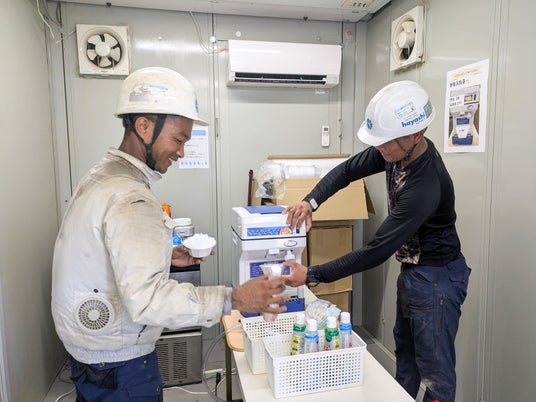 同社では、かき氷ステーション以外にも、熱中症予防ゼリー「ゼネコンがつくったしおゼリー」の企画・販売や、深部体温を図るウェアラブルデバイスの全作業員への配布など、多角的な熱中症対策を実施しています。