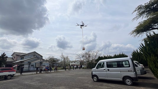 配送対象は、町内で高い評価を受ける飲食店が提供するお弁当と飲料で、参加者21名分を2便に分けて、黒部川沿いのイベント会場まで物流ドローンにより確実かつ安全に配送しました。