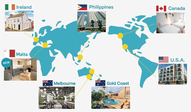 ”SMARYU RESIDENCE”とは、スマ留をご利用いただく留学生が宿泊できるスマ留専用の学生寮です。アメリカをはじめ、フィリピン、カナダ、アイルランド、オーストラリア、マルタへサポートエリアを拡大し、現在は合計で7棟の学生寮を運営しています。今後も英語圏を中心に更なる海外展開を目指していく方針です。