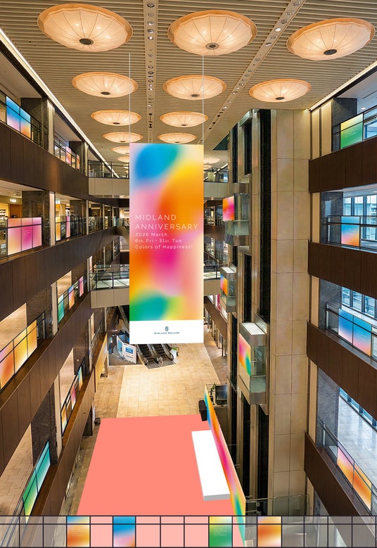 ミッドランドスクエアは2026年3月6日(金)~31日(火)の期間、『MIDLAND ANNIVERSARY 2026』を開催します。今年のテーマは「Colors of Happiness!」。春色が重なり、つながり、芽吹いていくように、これまで育んできた“しあわせの色”が館内を彩ります。オープニングイベントは2日間にわたり開催。第1弾となる6日(金)には、若手実力派の歌舞伎俳優・中村鷹之資さんを迎えたスペシャルトークショーを実施。続く7日(土)には、多彩な才能で幅広い層から支持を集めるMORISAKIWINさんによるスペシャルトーク&ライブを開催します。さらに、人気スタイリスト・辻直子さんによるスタイリングアドバイスも両日実施し、華やぎに満ちた特別な2日間を演出します。そのほか、サスティナブルマルシェやホワイトデーポップアップなど、毎年好評の企画も多数ラインアップ。しあわせが色づく19周年のひとときをお届けします。