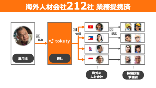 事業内容: 外国人特定技能人材のマッチングプラットフォーム「tokuty」の開発・運営