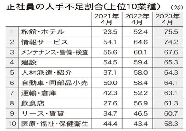 人手不足さらに深刻化(2023年5月22日付/観光経済新聞より抜粋)