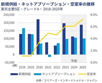 2023年は新規供給の増加により、オフィス市況の反転は見込みにくい