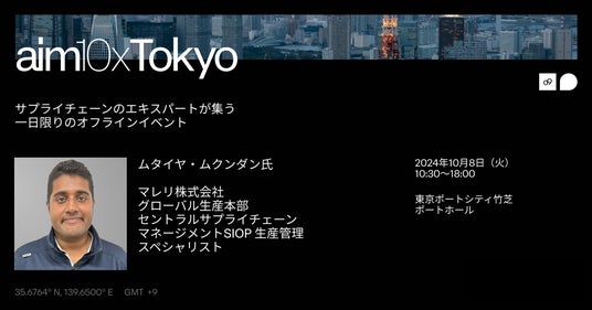 サプライチェーンプランニングプラットフォームを提供するo9ソリューションズ・ジャパン株式会社(所在地:東京都港区、代表取締役社長兼本社COO兼務:イゴール・リカロ、米国本社:テキサス州ダラス、以下o9ソリューションズ(オーナインソリューションズ))は、2024年10月8日(火)に開催するサプライチェーンイベント「aim10x Tokyo」において、マレリ株式会社様の登壇が決定したことを発表しました。