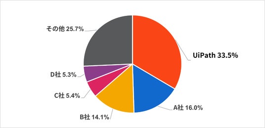 RPA市場:ベンダー別売上金額シェア(2025年度予測) 出典:「ITR Market View:RPA/iPaaS/ワークフロー市場 2025」