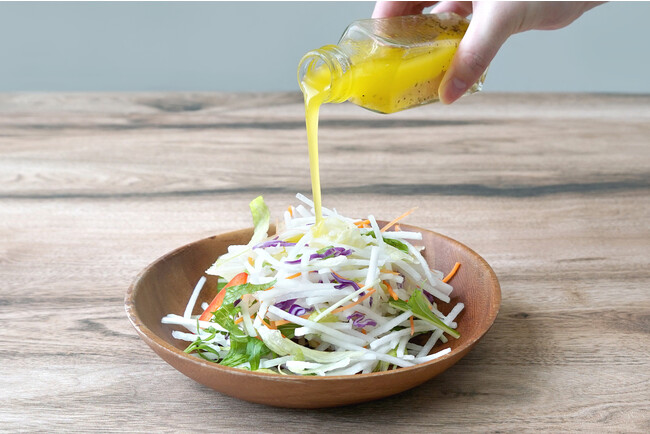 材料をすべてボウルに入れ、泡だて器で乳化するまでよく混ぜる。