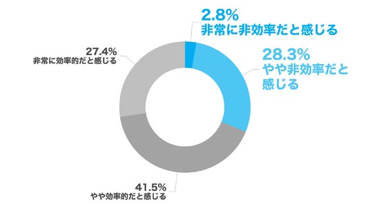 「非常に効率的だと感じる」が27.4%、「やや効率的だと感じる」が41.5%という回答となりました。約7割が「効率的」と回答する一方で、3割超(31.1%)は「非効率」と感じている実態が明らかになりました。