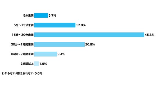 ・15分~30分未満:45.3%