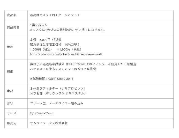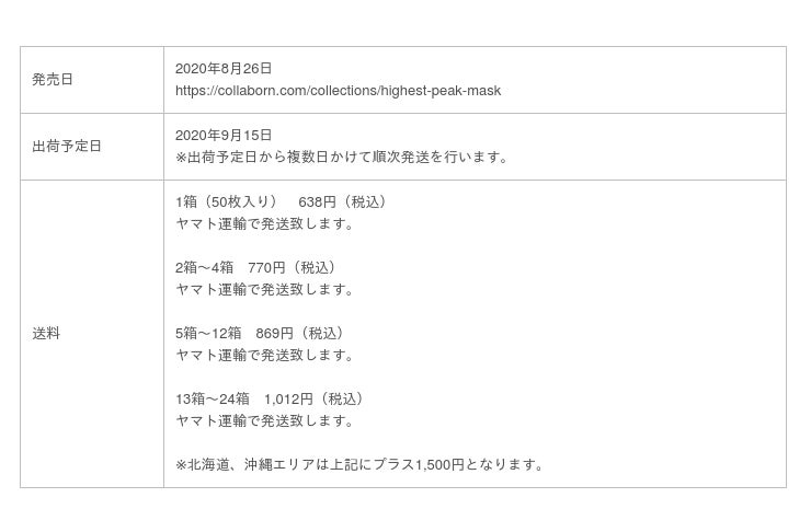販売サイトはこちら:https://collaborn.com/collections/highest-peak-mask