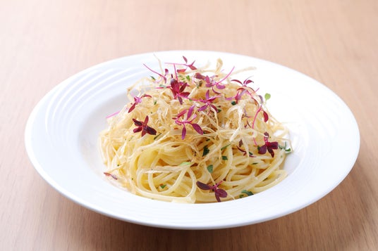ペペロンチーノにごぼうのフライ、アマランサスというハーブをトッピング。 食感と香りを楽しんでいただくそんな一品にしました! 見た目も立体的なので写真映えです♪