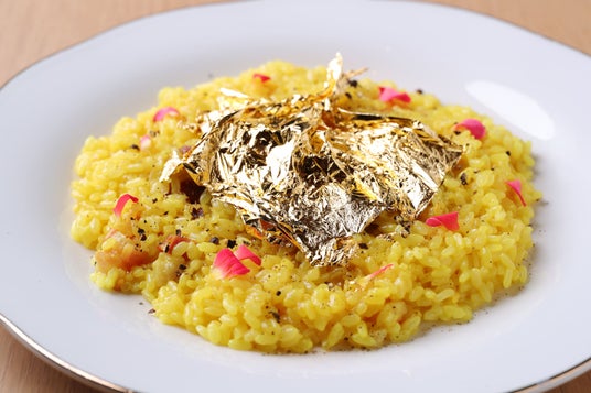 豪華に金箔をあしらったミラネーゼ。 牛のコンソメ、チーズのシンプルな味付けなのでとても食べやすいです!