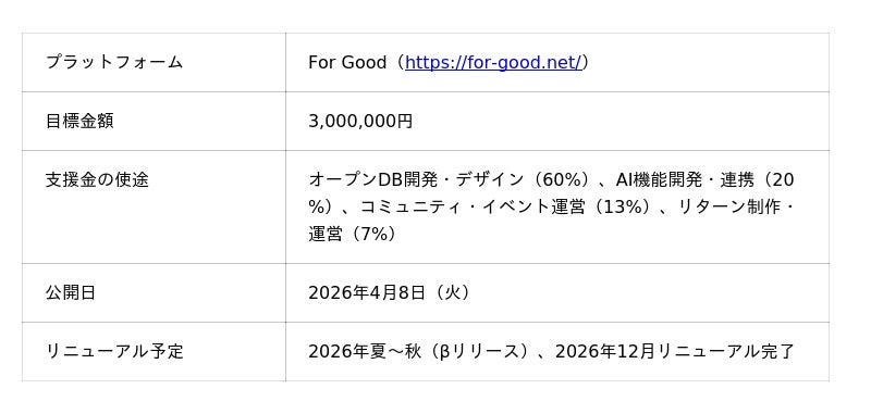 ソーシャルグッドなクラウドファンディングプラットフォーム「For Good」にて、クラウドファンディングを開始しました。