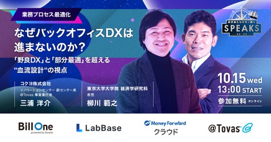 株式会社ニューピークス(NEWPEAKS.inc)は10月15日(水)、オンラインセミナーイベント「SPEAKS バックオフィス経営変革サミット」を開催します。