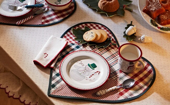 チェック柄のテーブルランナーやハート型コースター、リーフ型ガラスプレートなど、華やかなクリスマスディナーテーブルを提案。クリスマスや年末年始のホームパーティーなど、ゲストを迎えるテーブルに華やぎを添えます。おもてなしの席で映えるのはもちろん、ギフトにも喜ばれるアイテムが揃っています。