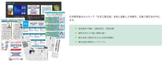 化学業界最大のメディア「化学工業日報」本紙と連動した特集号、記事で展示会をPRします。
