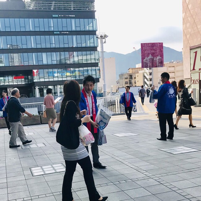 3.小倉駅前(福岡県北九州市)でのサンプリング・「香害」意見広告