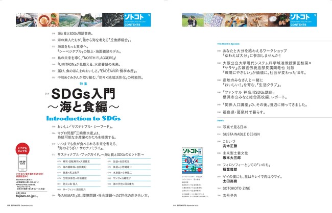 株式会社ソトコト・プラネット(東京都渋谷区、代表取締役社長:大久保清彦、指出一正)は8月5日(金)、未来をつくるSDGsマガジン『ソトコト』2022年9月号「SDGs入門~海と食編~」を発売しました。