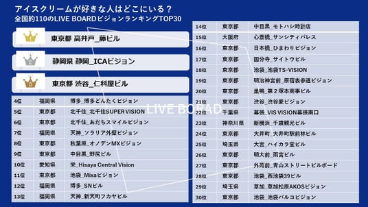 ◆“アイスクリームが好きな人”が多い屋外ビジョンランキングTOP30 を発表