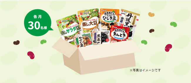 豆を使用したメニューの写真を「#everydaybeans」をつけて投稿していただいた方の中から、抽選で毎月30名様に「Everyday Beans!」大賞として「フジッコ豆商品詰め合わせ」をプレゼント!