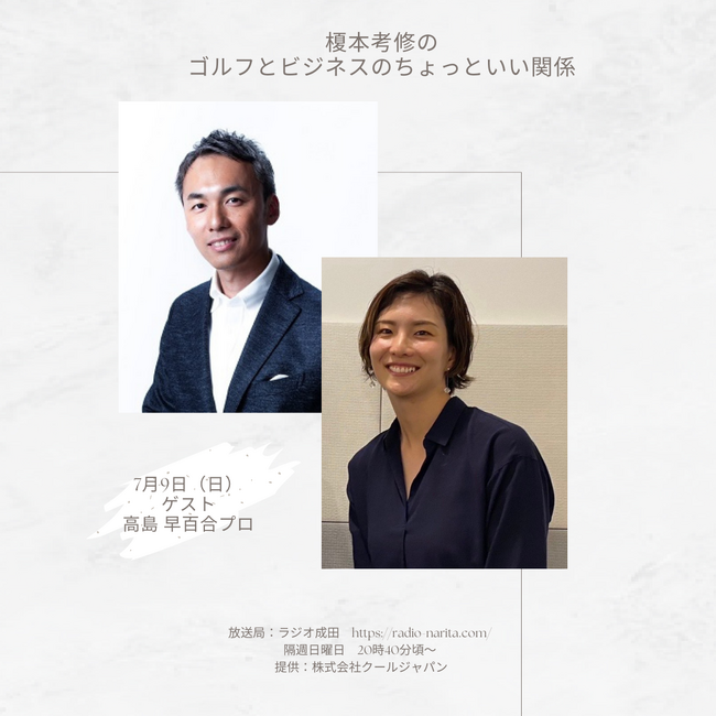 高島早百合プロは昨年第一子が誕生したママさんゴルファー。YouTubeチャンネル「さゆーちゅーぶ! 高島早百合チャンネル」は登録者数なんと5万人!!ご自身でゴルフスタジオを経営していることもあり、榎本とゴルフの話、ビジネスの話で大盛り上がり!高島プロの凛とした美しさ、芯の強さが伝わる20分です。どうぞお楽しみに。