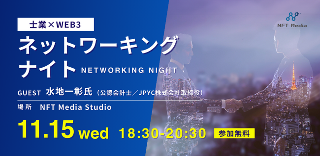 株式会社トレジャーコンテンツ(本社:東京都文京区、代表取締役:小林 憲人)は、運営するNFT専門メディア「NFT Media」にて、Web3でご活躍される「士業」の皆さまをつなぐ、「士業×Web3 ネットワーキングナイト by NFT Media」を開催することをお知らせします。