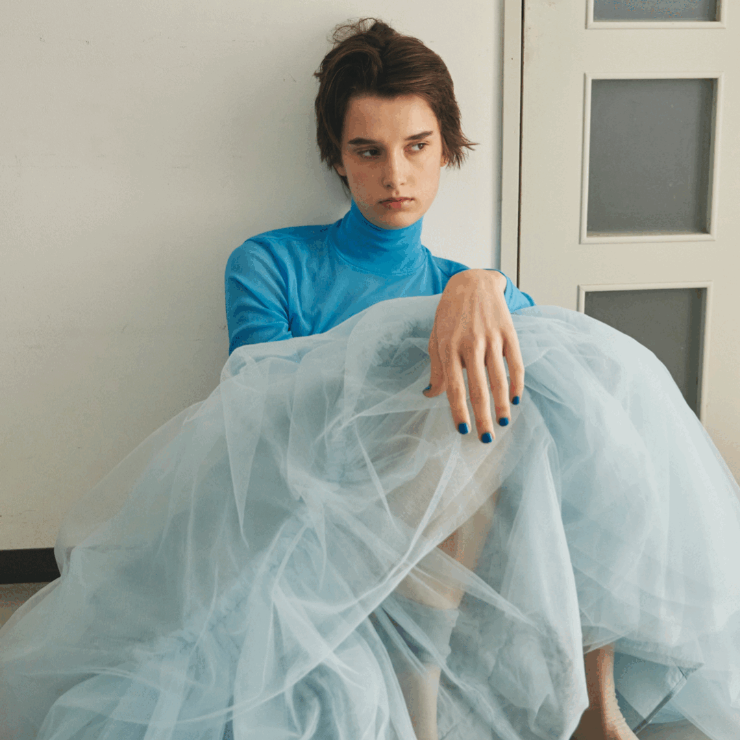 SS24コレクションではブランドの定番アイテムであるチュールスカートに新色が登場。