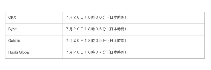 現在世界1位のIDO(Web3.0型資金調達)プラットフォームであるDAOMaker(ダオメイカー)において歴代最高のIDOの成功を収め、現在世界をリードするWeb3.0型メタバースへと成長している「XANA(ザナ)」は、それぞれ数千億円以上の日次取引高、1000万人を超えるユーザー数を持つ世界最大級の取引所4ヵ所へと同時上場する。取引通貨はXANAのプラットフォームトークンであるXETA(ゼータ)となり、上場時間はそれぞれ7月20日の日本時間18時から18時10分の間となり前日19日の発表後、全世界の暗号通貨市場の注目を大いに集めている。