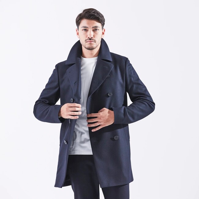 チェスターコートやPコート、6ボタンダブルブレストジャケット、テーラードジャケット、スラックスやジョガー、スタンドライダースに同素材を採用しており、本ポップアップにご用意いたします。
