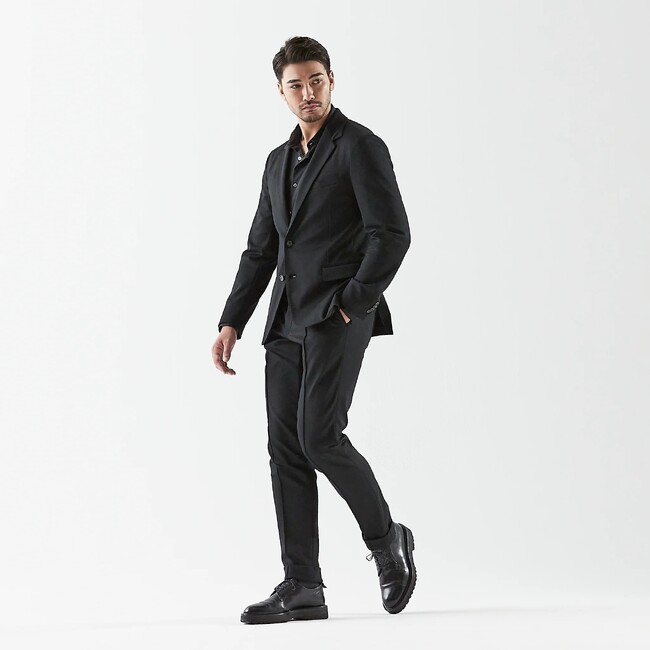 オンラインでは完売中の「Duplex Cotton Jersey BLACK シリーズ」の4アイテム(ジャケット、MA-1、スラックス、ジョガーパンツ)を、大丸福岡天神店向けにご用意。