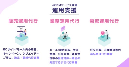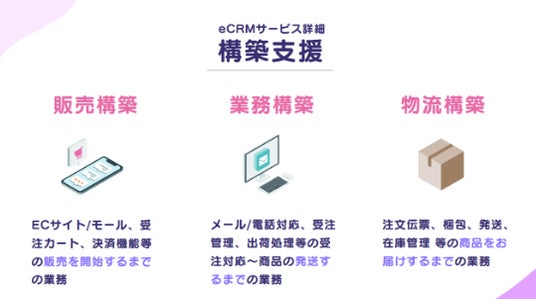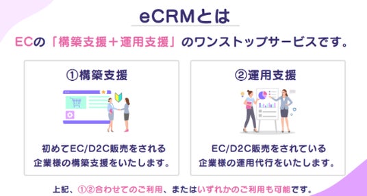 「eCRM」は、ECの「構築支援+運用支援」のワンストップサービスです。