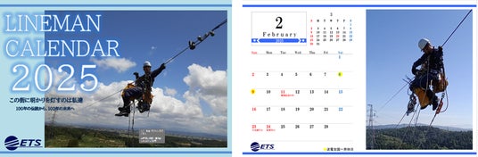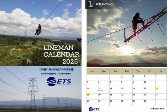 電力事業・設備事業・再生エネルギー事業を展開する株式会社ETSグループ(東京都豊島区、代表取締役:加藤慎章、証券コード:253A、以下「ETS」)は、一昨年と昨年に引き続き、送電線工事を担う「ラインマン」や鉄塔の写真を掲載した2025年のカレンダーを作成いたしました。