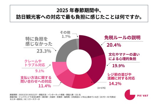 今回の調査結果から2025年の春節期間中は前年よりも混雑し、訪日観光客への対応で最も負担に感じたことは「免税ルールの説明」であることが明らかになりました。