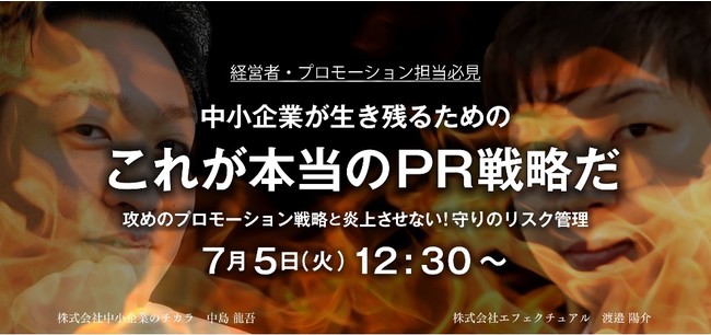中小企業支援(ブランディング、WEB マーケティング、SDGs支援)事業を行う株式会社中小企業のチカラ(本社:東京都渋谷区、代表取締役社長:山下 佳介、以下「中小企業のチカラ」)( https://nippon-smes-project.com/ )は、MEOを活用した店舗の集客支援サービスを行う株式会社エフェクチュアル(本社:東京都港区、代表取締役:田中 倫明)と共に、「中小企業が生き残るための”攻めのプロモーション戦略”と”炎上させない!守りのリスク管理”」をテーマに無料ウェビナーを開催いたします。