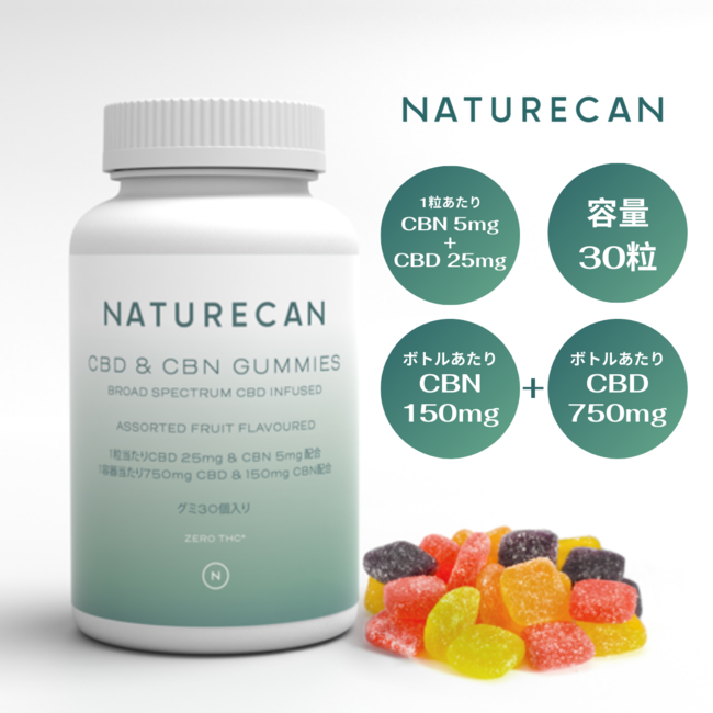 3月より、待望のCBNグミがCBD専門店Naturecan(ネイチャーカン)公式サイトにて発売開始されました。