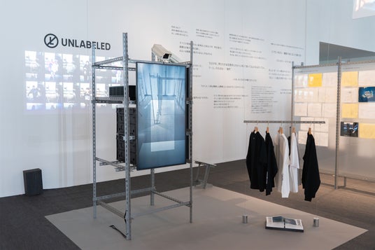 「攻殻機動隊展 Ghost and the Shell」会場内のUNLABELEDのブースでは、モニターの前でウェアを胸元にかざすことで、カモフラージュ柄の機能を体験いただくことが可能です。本展示では、『攻殻機動隊』の熱光学迷彩に着想を得た視覚効果もお楽しみいただけます。ぜひお立ち寄りください。