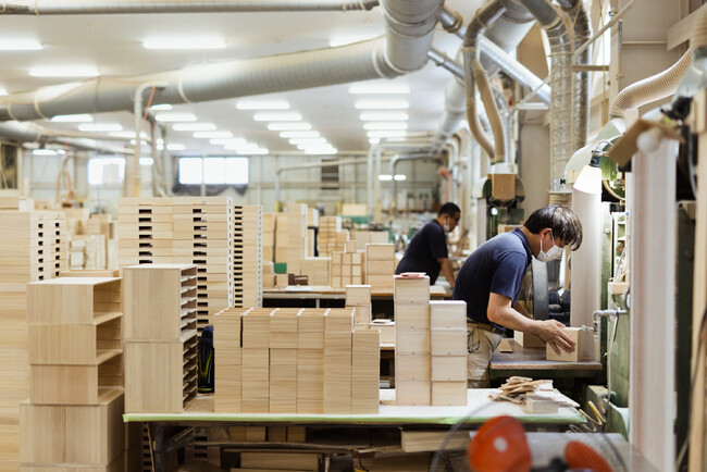 増田桐箱店は、広島県府中市で桐箱店を営んでいましたが、博多人形などの伝統工芸品の箱を作るために福岡県に移り1929年に創業。美術品などを所蔵する一点ものの桐箱から、ギフトや飲食品のパッケージなどの量産品、自社商品の開発など、幅広いケースの桐箱生産を展開しています。大切な物の保管に長年用いられてきた桐箱の魅力を、ものづくりを通して伝えつづけています。