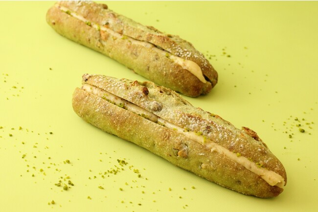 昨年大好評の商品が、期待にお応えして今年も登場します。色鮮やかなピスタチオとくるみを練りこんだ生地にに、プチプチとした食感も楽しいいちじくバターをサンド。練乳を加えてまろやかに仕上げたいちじくバターの甘さには、すっきりとした白ワインとの組み合わせがおすすめです。